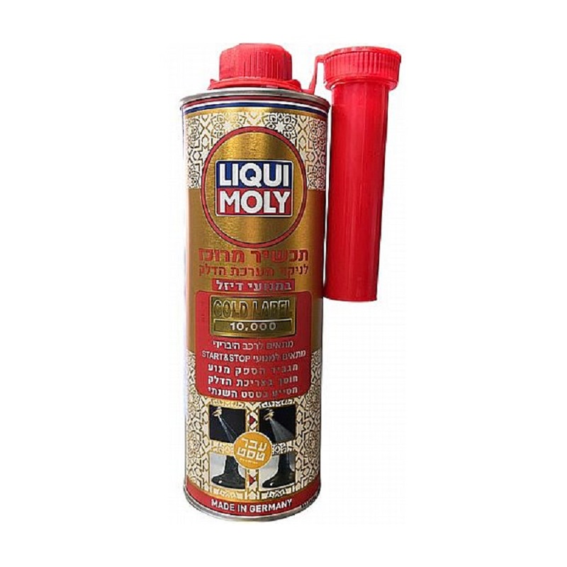 תוסף הדלק הפופולארי ביותר של Liqui Moly, הגולד לייבל המוכר (Gold Label 10,000). תוסף חזק ויעיל המסייע בצמצום מזהמים ומסוגל לטפל גם במקרים בהם הרכב נכשל במבחן השנתי (טסט).